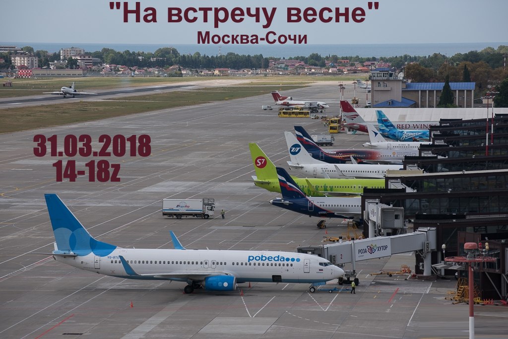 Предлагается всем пилотам виртуальных авиакомпаний осуществить вылет из одного из трех Московских аэропортов, где для вас будет осуществляться УВД в Домодедово, Шереметьево и Внуково, как минимум позицией вышка (TWR). Руководители ВАК могут организовать дополнительно и позицию руления (GND), либо по согласованию с ATC координаторами и руководителями ВАК эти позиции могут занять любые пользователи сети, нашего дивизиона. По результатам голосования, победил аэропорт города Сочи. Формат мероприятия - Flight In. Все участники в течении 2 часов вылетают из аэропортов города Москвы и устремляются на юг нашей Родины, где весь трафик будут выстраивать в очередь, для того что бы осуществить посадку в Адлере, "Вангую" - ВПП 02. "