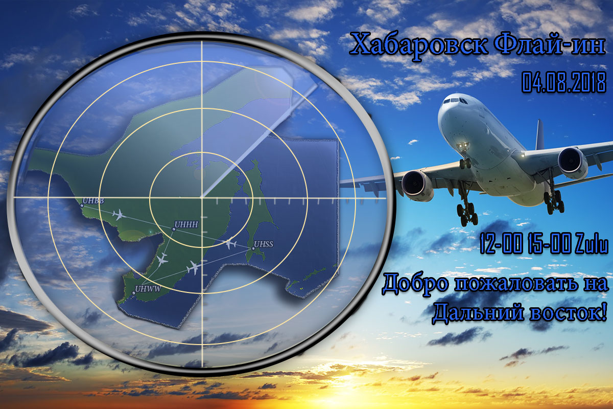 Всех, кто неравнодушен к Дальнему Востоку, и у кого учащенно бьется сердце при словах Хабаровск, Южно-Сахалинск, Владивосток, а также всех остальных виртуальных пилотов и диспетчеров приглашаем принять участие в юзер-ивенте Флай-Ин Хабаровск, который пройдет 04.08.2018 с 12z по 15z.Основным аэропортом ивента является Хабаровск (UHHH). Аэропорты, участвующие в ивенте: Южно-Сахалинск (UHSS), Благовещенск (UHBB), Владивосток (UHWW). Аэропорт вылета и прилета участники выбирают сами по желанию.