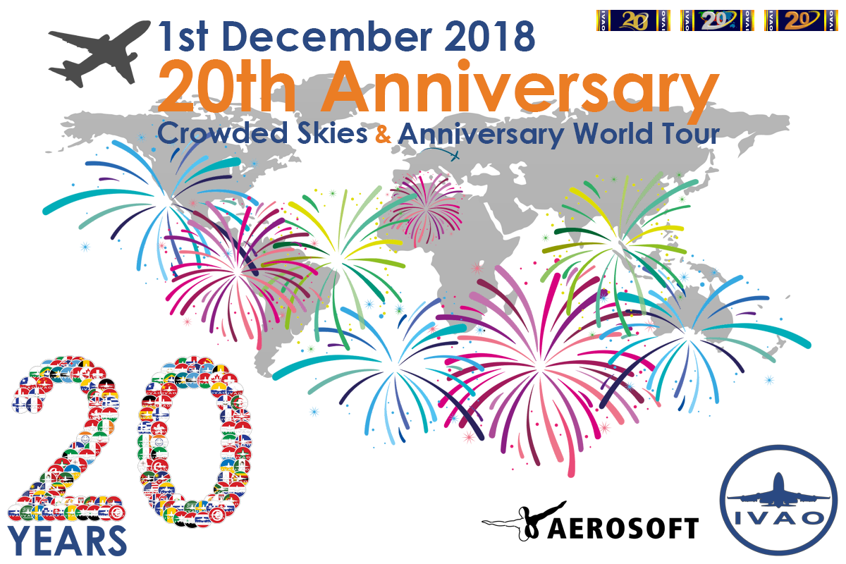 Дорогие участники IVAO!С начала образования IVAO прошло уже 20 лет! И это стоит отметить! 1 декабря пройдет самое большое празднование!С 00.00z начнётся наш 24-часовой ивент, во время которого пройдет и наш ежегодный Croweded Skies! Belux Region и Греческий дивизион проведут первый лег 20th Anniversary World Tour и крайний 20th Anniversary Divison Airbridge!Присоединяйтесь!