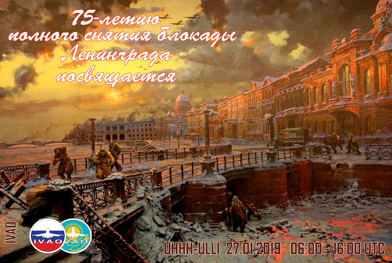 Объединенный дивизион Российской Федерации и Республики Казахстан сети IVAO рад представить Вам очередное традиционное мероприятие «Встречи в Аничковом дворце» - регулярные ежемесячные встречи в Санкт-Петербурге членов объединенного дивизиона Российской Федерации и Республики Казахстан сети IVAO и курсантов юношеского клуба космонавтики им. Г. С. Титова. Также, в этот день, 27 января 1944, ровно 75 лет назад от фашистских захватчиков был освобожден Город-Герой Ленинград.8 сентября 1941 года немецко‑фашистские войска овладели Шлиссельбургом и отрезали Ленинград от всей страны с суши. Потерпев неудачу в попытках прорвать оборону советских войск внутри блокадного кольца, немцы решили взять город измором. Вовремя блокады на город совершались массивнае авианалёты и артобстрелы: всего за период блокады по городу было выпущено около 150 тысяч снарядов и сброшено свыше 107 тысяч зажигательных и фугасных бомб. В блокированном городе оказалось более двух с половиной миллионов жителей, в том числе 400 тысяч детей. 27 января 1944 года стало днем полного освобождения Ленинграда от блокады.Блокада Ленинграда длилась почти 900 дней и стала самой кровопролитной блокадой в истории человечества: от голода и обстрелов погибло свыше 641 тысячи жителей.Мы помним подвиг наших отцов и дедов, благодарим их за мужествои отвагу. А почтить память умерших и отпраздновать эту знаменательную дату предлагаем авиамостом через всю Россию.27.01.2019 в 06z-08z приглашаем всех вылететь из Хабаровска и направиться в Санкт-Петербург, где вас будут встречать участники втречи в Аничковом дворце.Встреча в Аничковом Дворце пройдёт в стандартное время с 12-16UTC, так что если, по какой-либо причине вы не сумели вылететь из Хабаровска, то в воздушной зоне Питера вам будут всё равно рады.