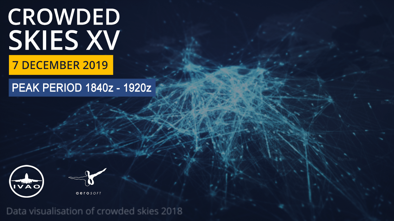 IVAO представляет Вам главное событие этого года: Crowded Skies XV, которое состоится 7 декабря. Этот уникальный 24-часовой ивент наполнит все виртуальное небо активностью. Ожидается участие десятков стран по всему миру, полное диспетчерское покрытие зон для тысяч виртуальных пилотов. Пик подключений ожидается с 18:40 UTC, поэтому убедитесь, что вы имеете возможность принять участие в самом лучшем событии, которое может организовать IVAO.