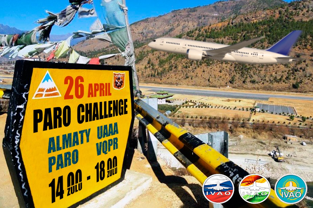 В этом Апреле Российский Дивизион ИВАО продолжает серию мероприятий - полеты в самые опасные аэропорты мира! На этот раз совместно с нашими Казахстанскими и Индийскими коллегами мы попробуем преодолеть сложнейших заход в аэропорт Паро, Бутан. Диспетчерская смена будет работать как в аэропорту вылета, так и в аэропорту прилета. Вы готовы испытать себя и свои навыки пилота? За успешную посадку с ПЕРВОЙ попытки в аэропорту назначения каждый профессионал получит медаль Pilot Skills!